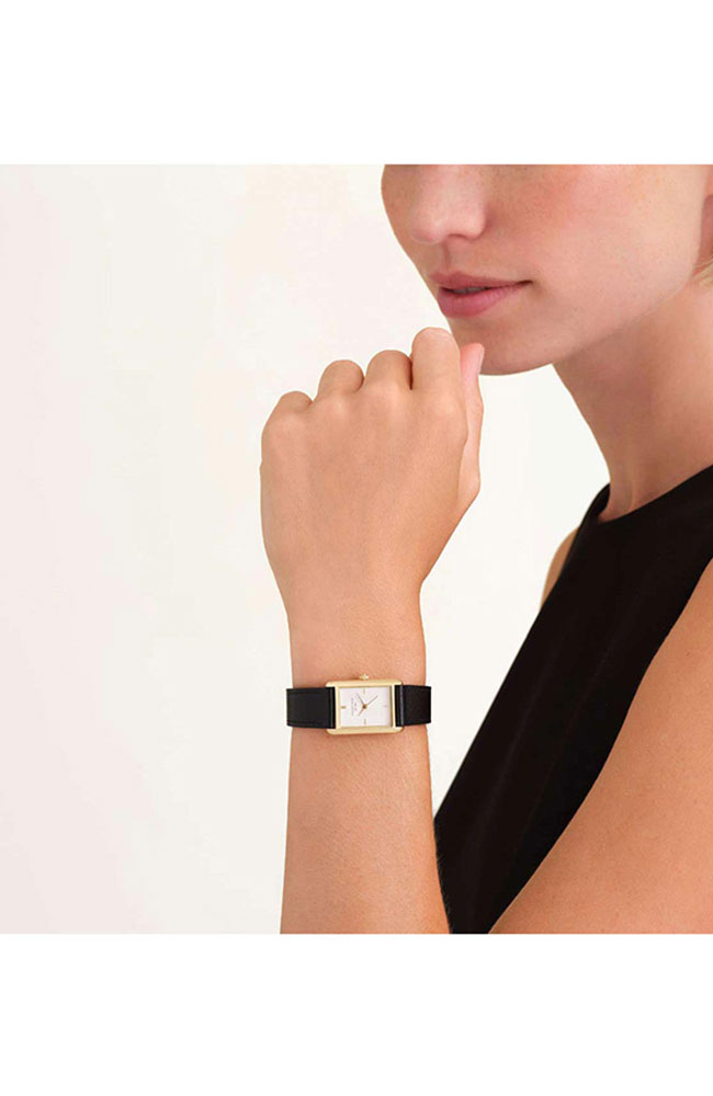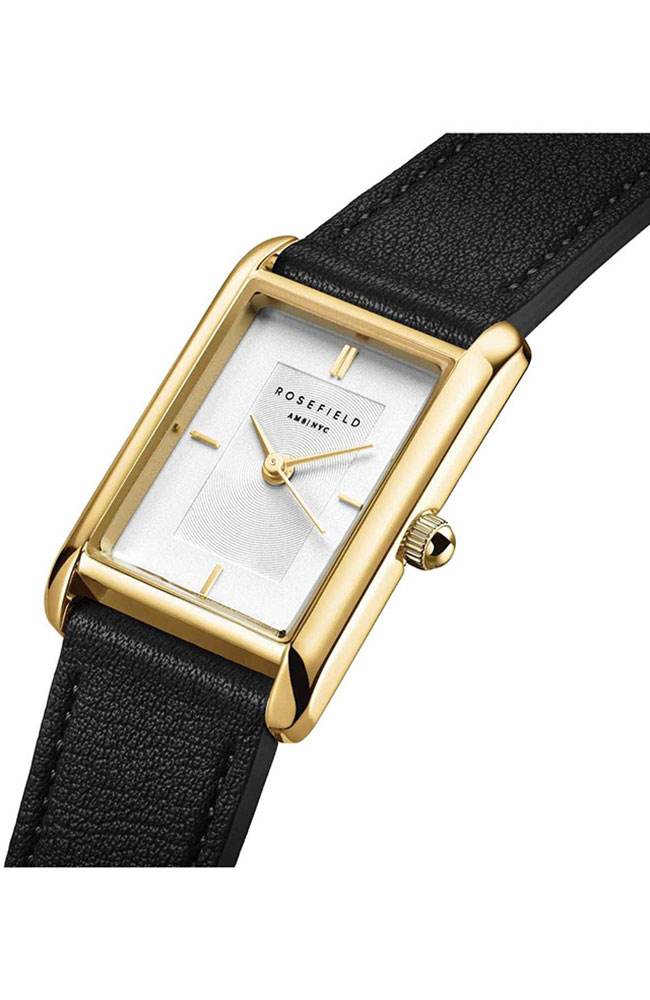 Γυναικείο ρολόι Rosefield από ανοξείδωτο ατσάλι με λευκό καντράν και μαύρο δέρματινο λουράκι.