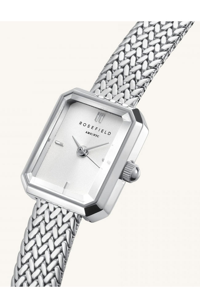 Γυναικείο ρολόι Rosefield από ανοξείδωτο ατσάλι με λευκό φίλντισι καντράν και μπρασελέ.