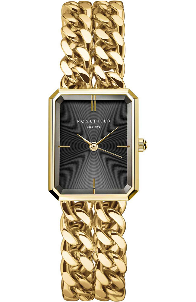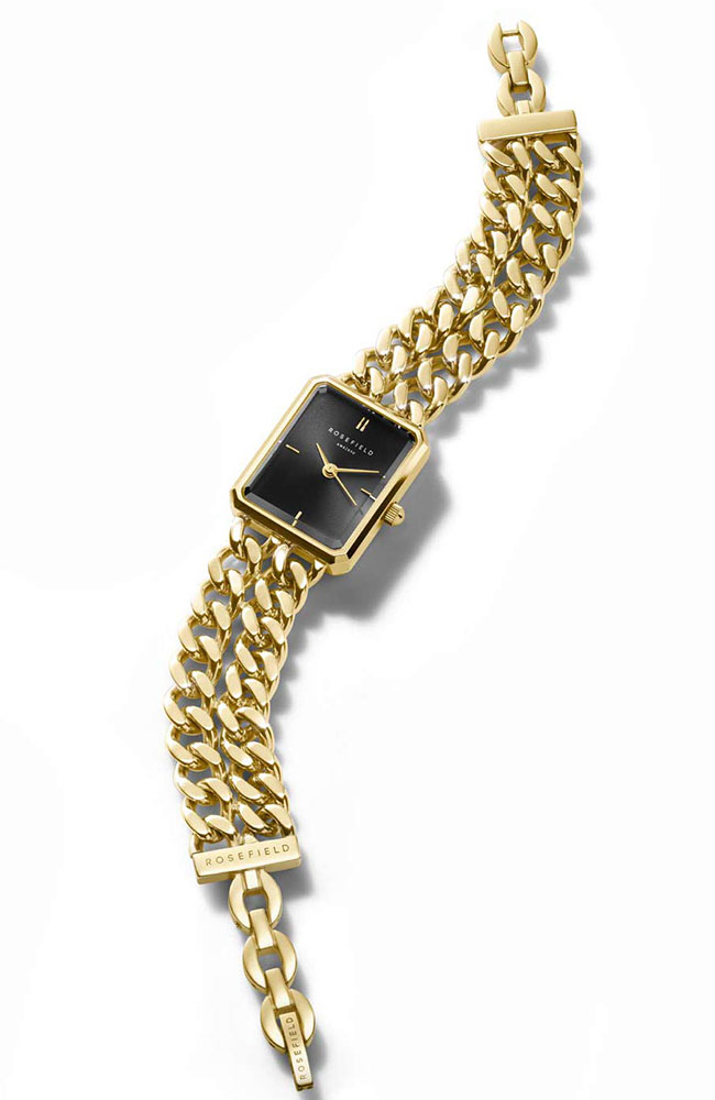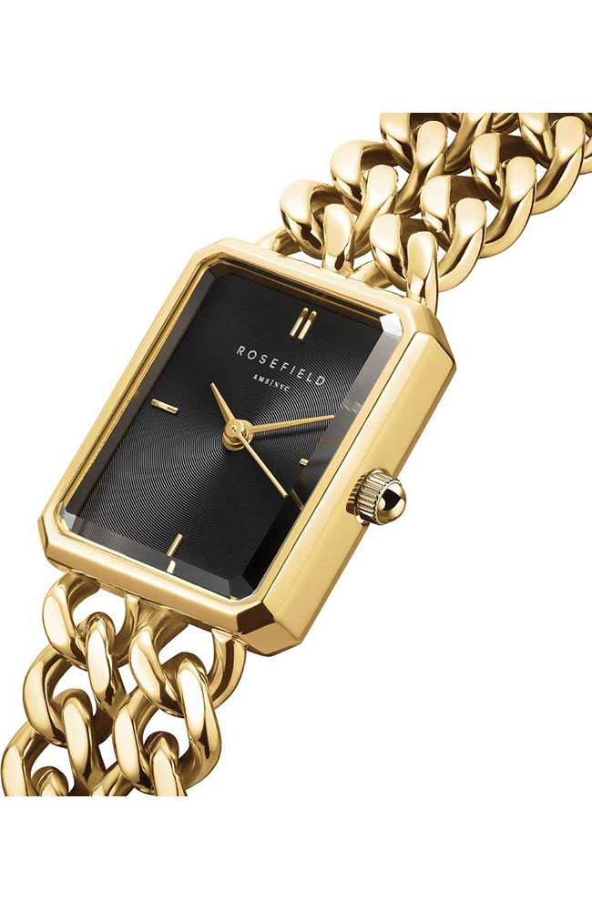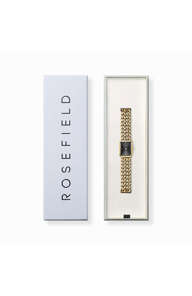 Γυναικείο ρολόι Rosefield από επιχρυσωμένο ανοξείδωτο ατσάλι με μαύρο καντράν και μπρασελέ.