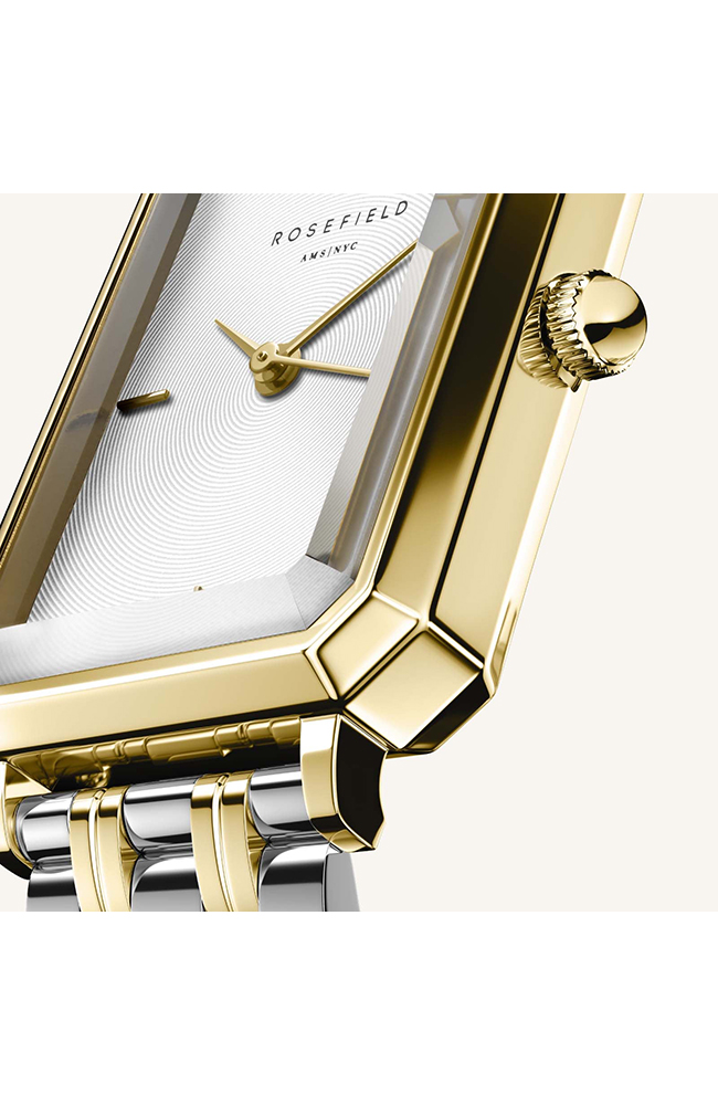 Γυναικείο ρολόι Rosefield από ανοξείδωτο ατσάλι με ασημί καντράν και δίχρωμο μπρασελέ.