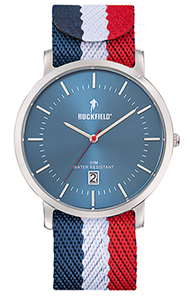 Ανδρικό ρολόι Ruckfield από ανοξείδωτο ατσάλι με μπλε καντράν και δίχρωμο υφασμάτινο λουράκι.