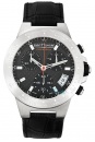 Ανδρικό ρολόι Χρονογράφος Saint Honore Ελβετικής Κατασκευής από ανοξείδωτο ατσάλι με μαύρο καντράν και μαύρο δερμάτινο λουράκι.