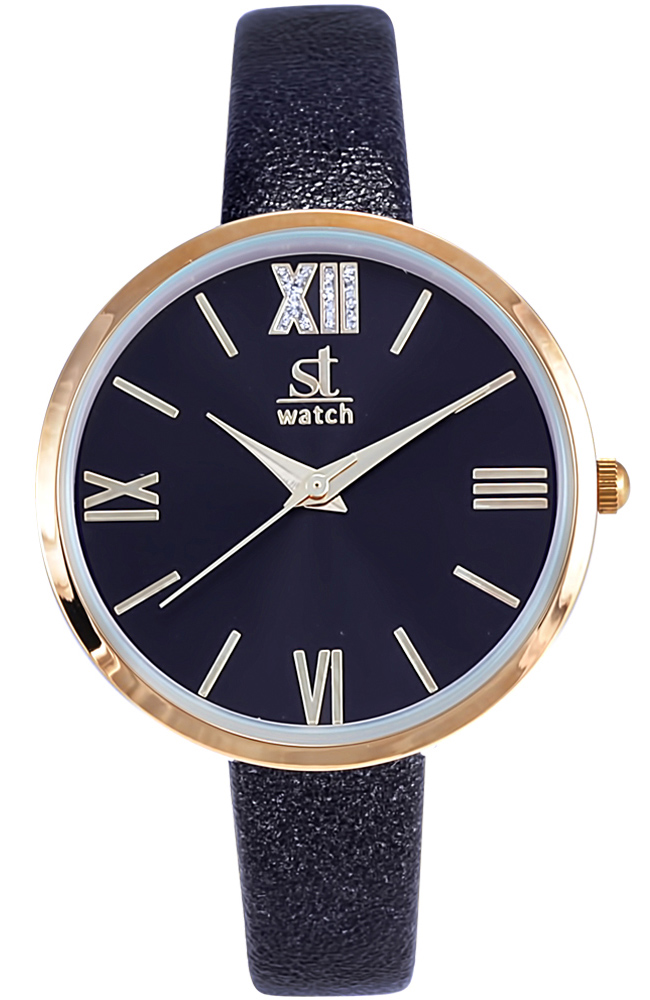 Γυναικείο ρολόι χειρός Season Time με μαύρο καντράν και μαύρο δερμάτινο λουράκι.