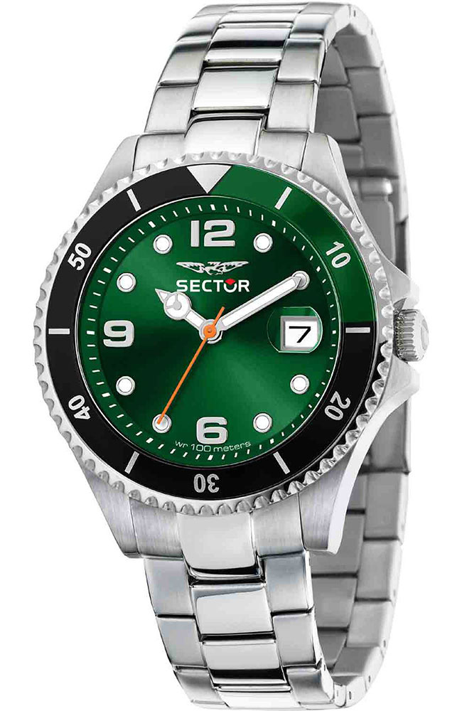 Ανδρικό ρολόι Sector από ανοξείδωτο ατσάλι με πράσινο καντράν και μπρασελέ.