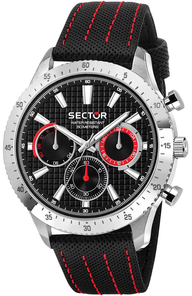 Ανδρικό ρολόι Sector από ανοξείδωτο ατσάλι με μαύρο καντράν και δερμάτινο λουράκι.