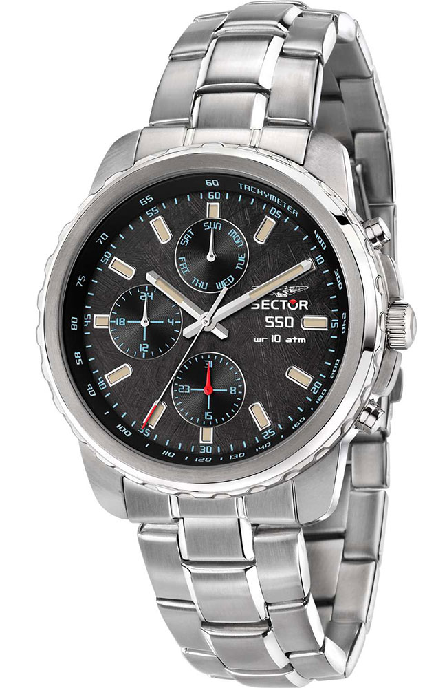 Ανδρικό ρολόι Sector με μαύρο καντράν και μπρασελέ.