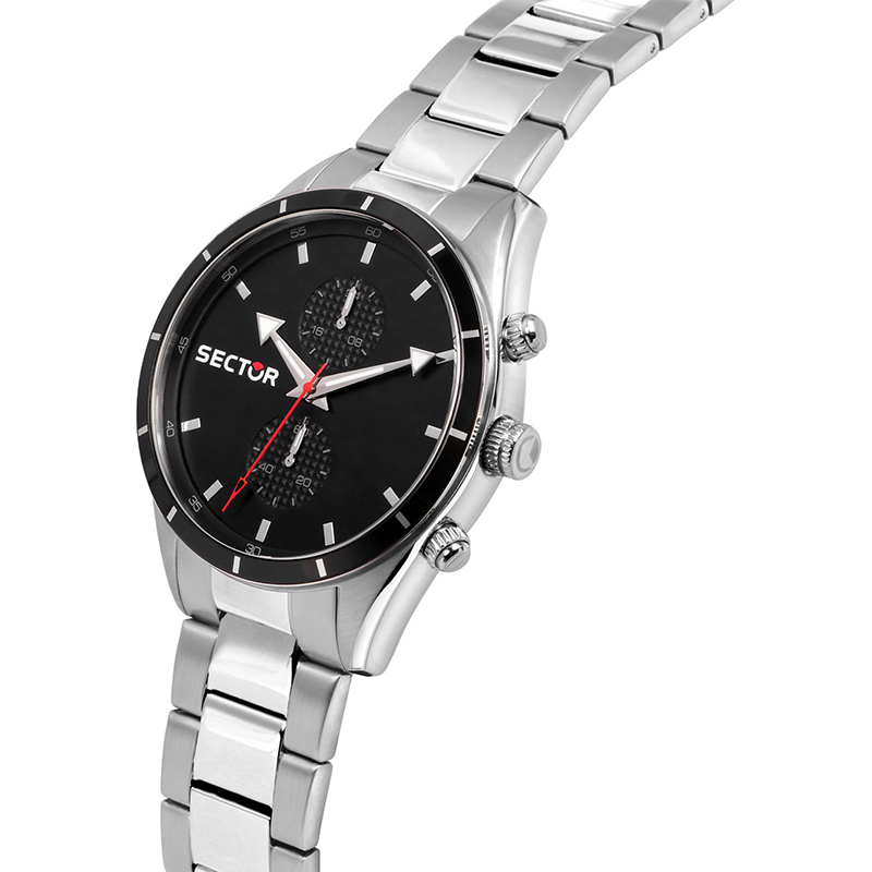 Ανδρικό ρολόι Sector με μαύρο καντράν και μπρασελέ.