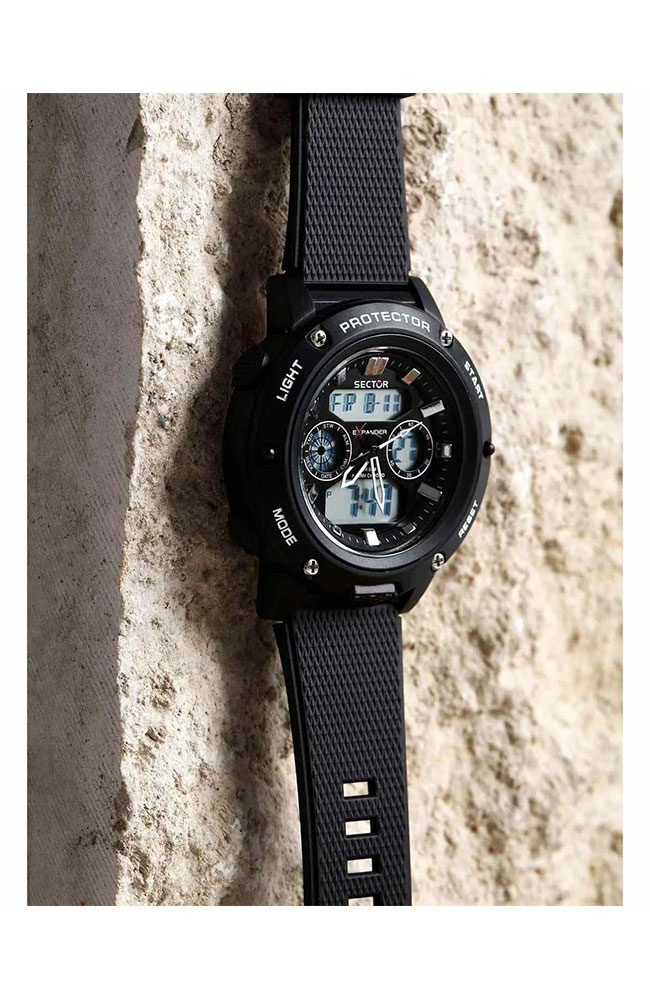 Ανδρικό ρολόι Sector με μαύρο καντράν και μαύρο καουτσούκ λουράκι.