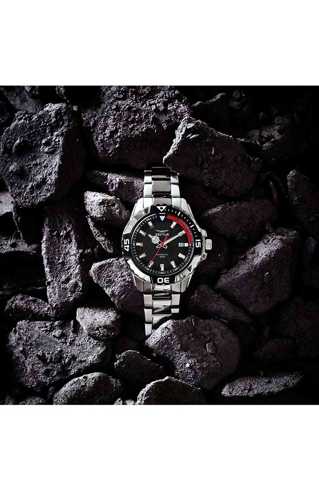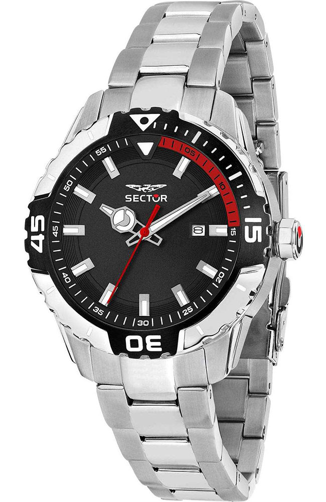 Ανδρικό ρολόι Sector από ανοξείδωτο ατσάλι με μαύρο καντράν και μπρασελέ.