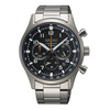 Ανδρικό ρολόι χρονογράφος Seiko από ανοξείδωτο ατσάλι με μαύρο καντράν και ασημί μπρασελέ.