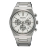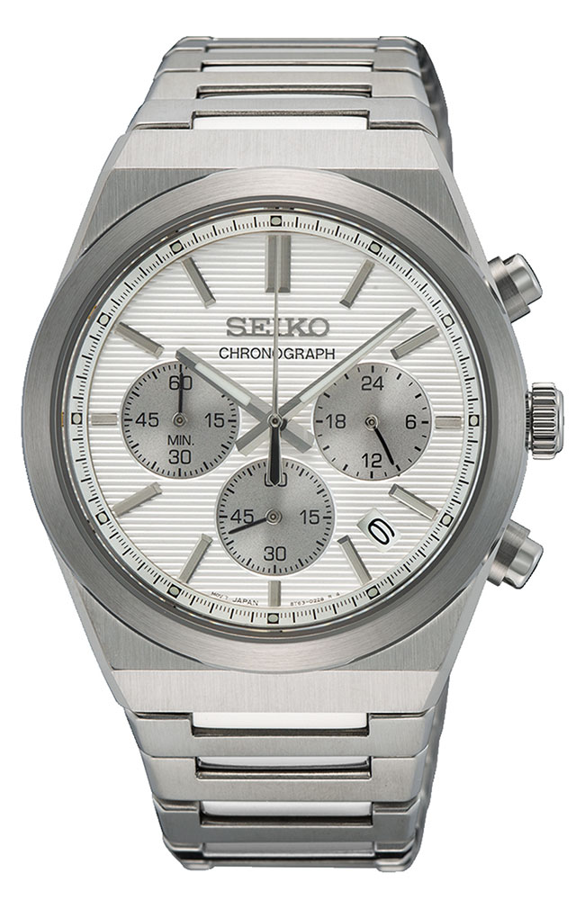 Ανδρικό ρολόι χρονογράφος Seiko από ανοξείδωτο ατσάλι με λευκό καντράν και ασημί μπρασελέ.