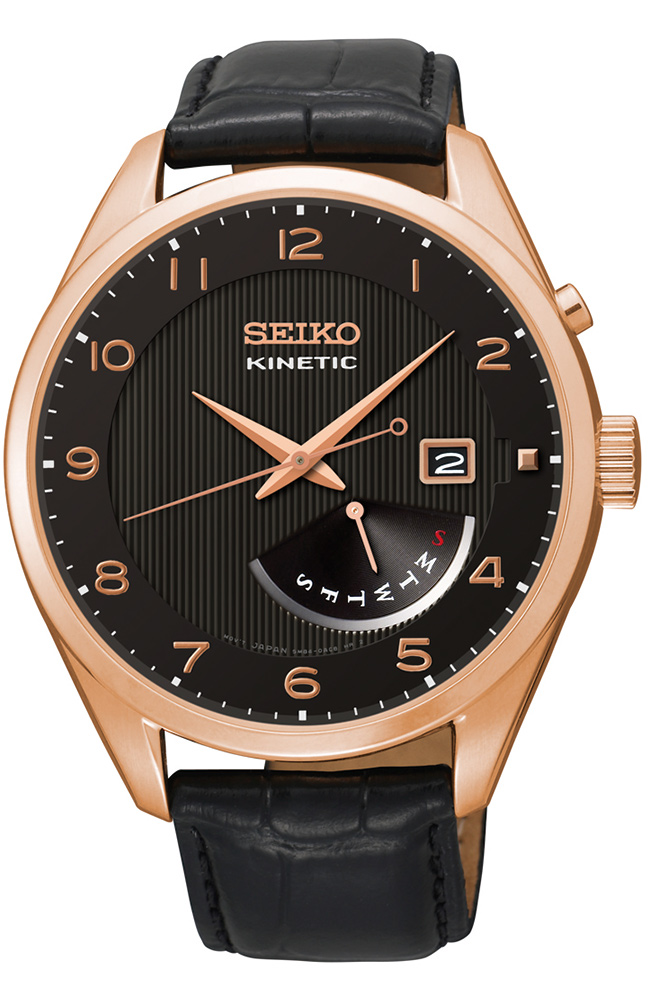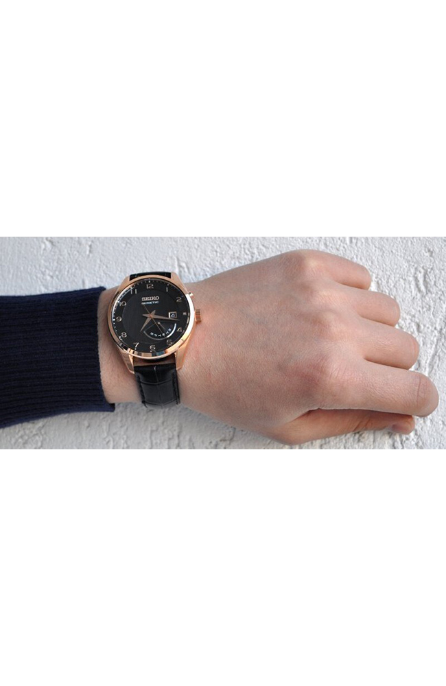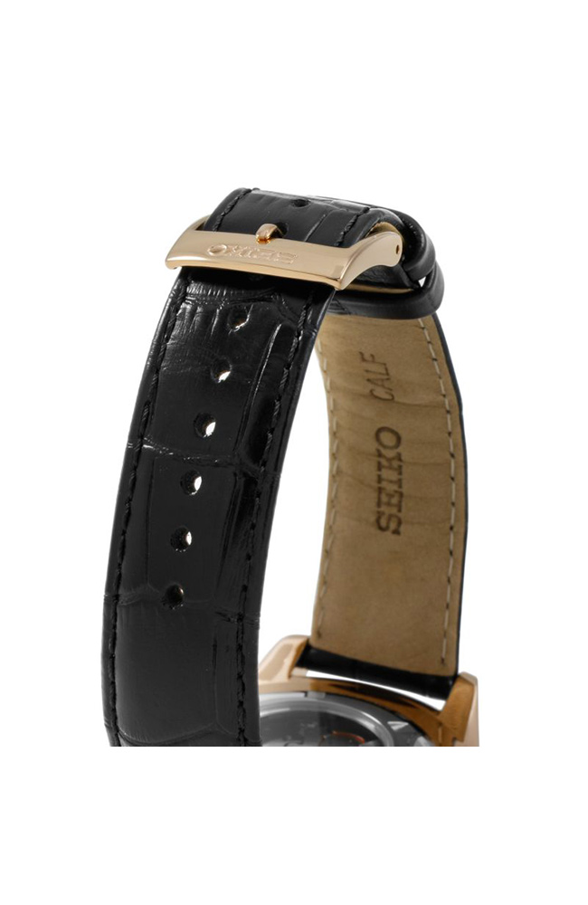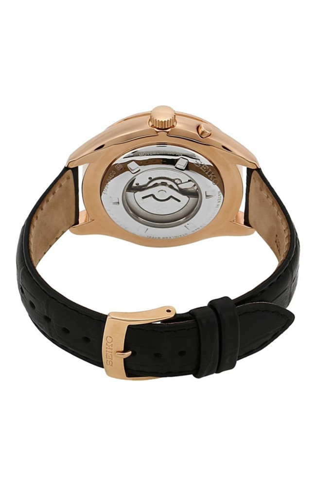 Ανδρικό ρολόι Seiko με αυτόματο μηχανισμό από ανοξείδωτο ατσάλι με μαύρο καντράν και δερμάτινο λουράκι.