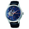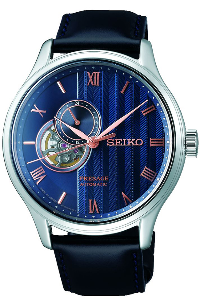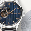 Ανδρικό ρολόι Seiko με αυτόματο μηχανισμό από ανοξείδωτο ατσάλι με μπλε καντράν και δερμάτινο λουράκι.