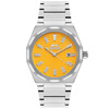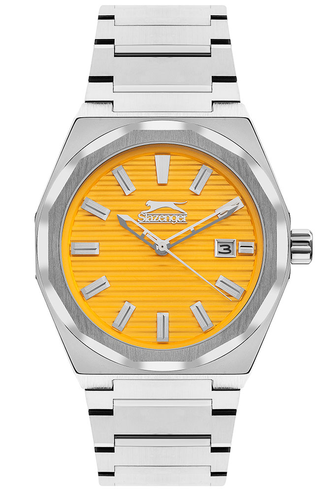 Ανδρικό ρολόι χειρός Slazenger με κίτρινο καντράν και ασημί μπρασελέ.