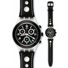 Ανδρικό ρολόι Χρονογράφος ελβετικής κατασκεύης Swatch από ανοξείδωτο ατσάλι με μαύρο καντράν και μαύρο δερμάτινο λουράκι.