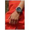 Αυτό το ρολόι μεγάλου μεγέθους διαθέτει μπλε καντράν με δείκτες που φωσφορίζουν στο σκοτάδι σε μεταλλική αμμοβολισμένη κάσα. Ένα μπλε ρολόι με μεγάλη όψη, ανθεκτικό ανάγλυφο λουράκι και διπλό θηλάκι.