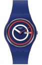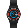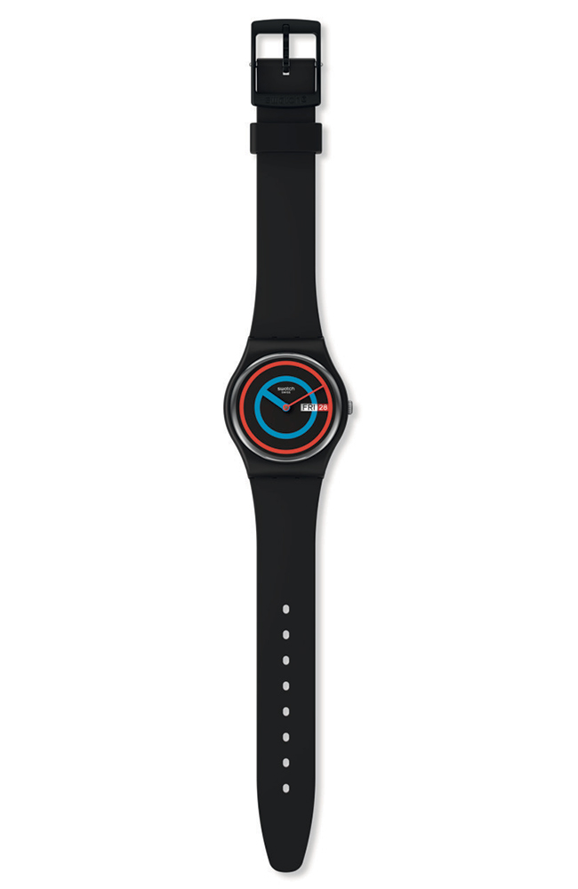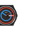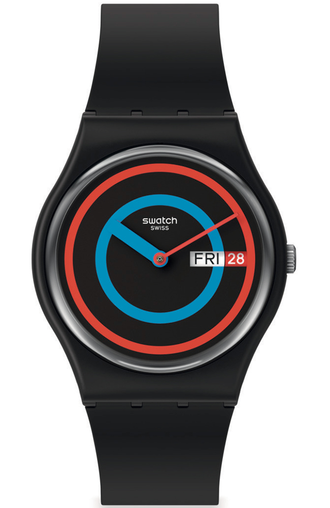 Ρολόι χειρός Swatch ελβετικής κατασκευής με πολύχρωμο καντράν και καουτσούκ λουράκι.
