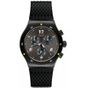 Ανδρικό ρολόι Χρονογράφος ελβετικής κατασκευής Swatch με καφέ καντράν και μαύρο καουτσούκ λουράκι.