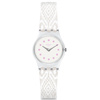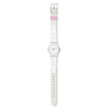 Γυναικείο ρολόι χειρός Swatch ελβετικής κατασκεύης με λευκό καντράν και λευκό καουτσούκ λουράκι.