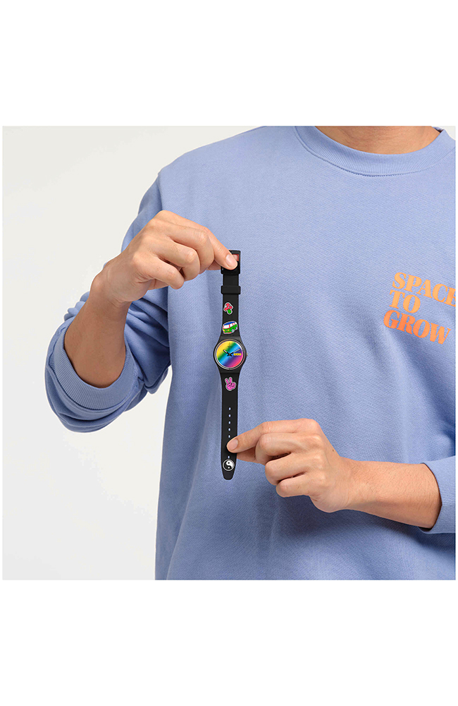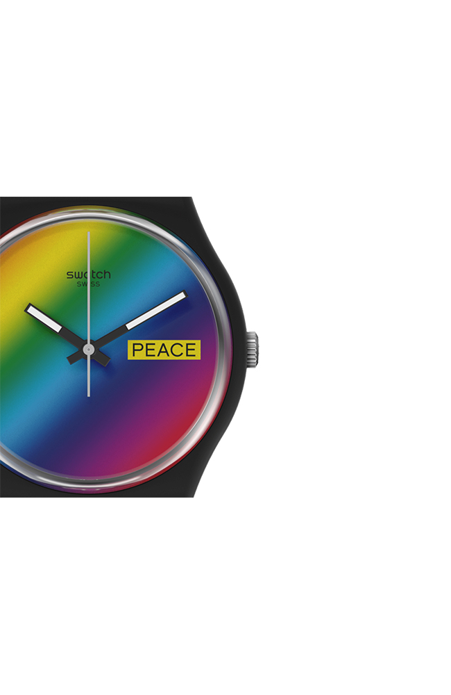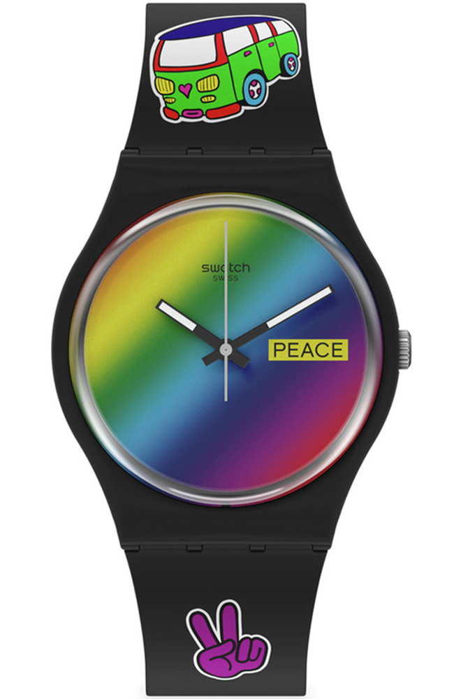 Αυτό το ντεγκραντέ ρολόι στα χρώματα του ουράνιου τόξου είναι αφιερωμένο στο στυλ της δεκαετίας του ’60 με την αμιγώς μαύρη κάσα BIOCERAMIC, το τζάμι βιολογικής προέλευσης, το μαύρο λουράκι σιλικόνης με τα πολύχρωμα εκτυπωμένα σύμβολα και το καντράν με την εκτύπωση στα χρώματα του ουράνιου τόξου και τους δείκτες που λάμπουν στο σκοτάδι. Σε αυτό το ρολόι, στη θέση της ένδειξης ημερομηνίας υπάρχει η λέξη «Peace».