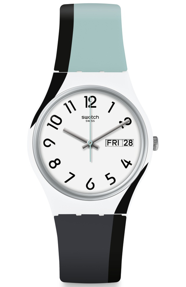 Γυναικείο ρολόι Ελβετικής κατασκευής Swatch με λευκό καντραν και κόκκινο καουτσούκ λουράκι.