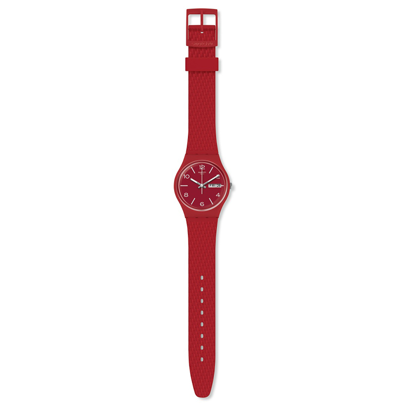 Γυναικείο ρολόι Ελβετικής κατασκευής Swatch με κόκκινο καντραν και κόκκινο καουτσούκ λουράκι.