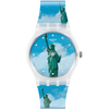 Ρολόι χειρός Swatch ελβετικής κατασκευής με πολύχρωμο καντράν και καουτσούκ λουράκι.