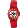 Ρολόι Ελβετικής κατασκευής Swatch με κόκκινο καντράν και κόκκινο καουτσούκ λουράκι.
