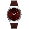 Γυναικείο ρολόι ελβετικής κατασκευής Swatch με μπορντό καντράν και μπορντό καουτσούκ λουράκι.