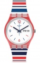 Ανδρικό ρολόι χειρός Swatch ελβετικής κατασκευής με λευκό καντράν και πολύχρωμο καουτσούκ λουράκι.