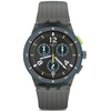Ανδρικό ρολόι Χρονογράφος ελβετικής κατασκευής Swatch με γκρι καντράν και γκρι καουτσούκ λουράκι.