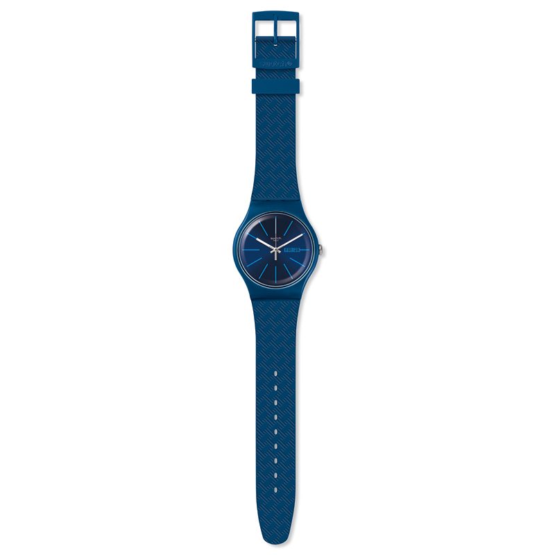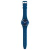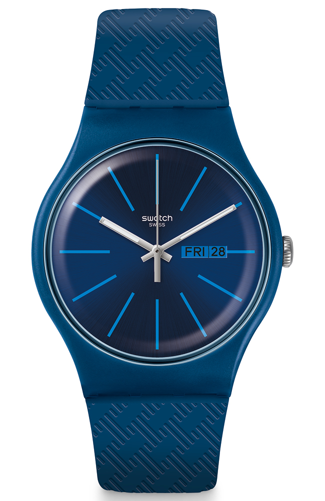 Ανδρικό ρολόι χειρός Swatch ελβετικής κατασκευής με μπλε καντράν και μπλε καουτσούκ λουράκι.