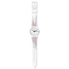 Ρολόι ελβετικής κατασκευής Swatch με λευκό καντράν και λευκό καουτσούκ λουράκι.