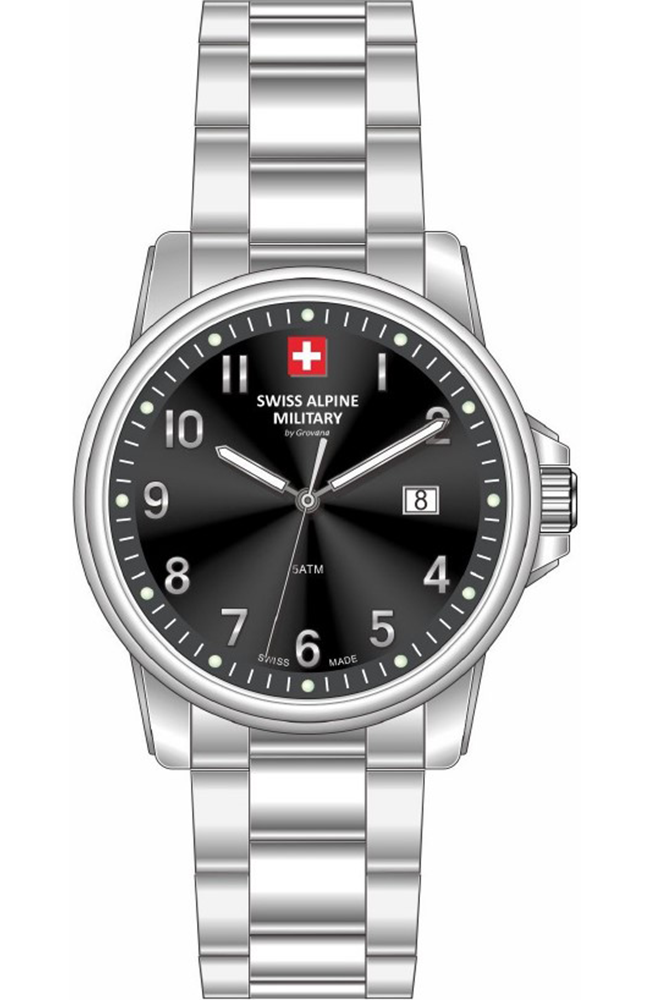 Γυναικείο ρολόι χειρός Swiss Alpine Military από ανοξείδωτο ατσάλι με μαύρο καντράν και μπρασελέ.