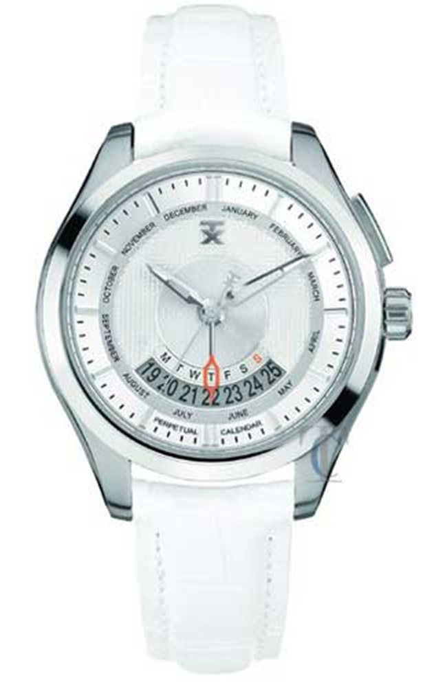 Ανδρικό ρολόι TECHNOLUXURY με ασημί καντράν και λευκό δερμάτινο λουράκι.