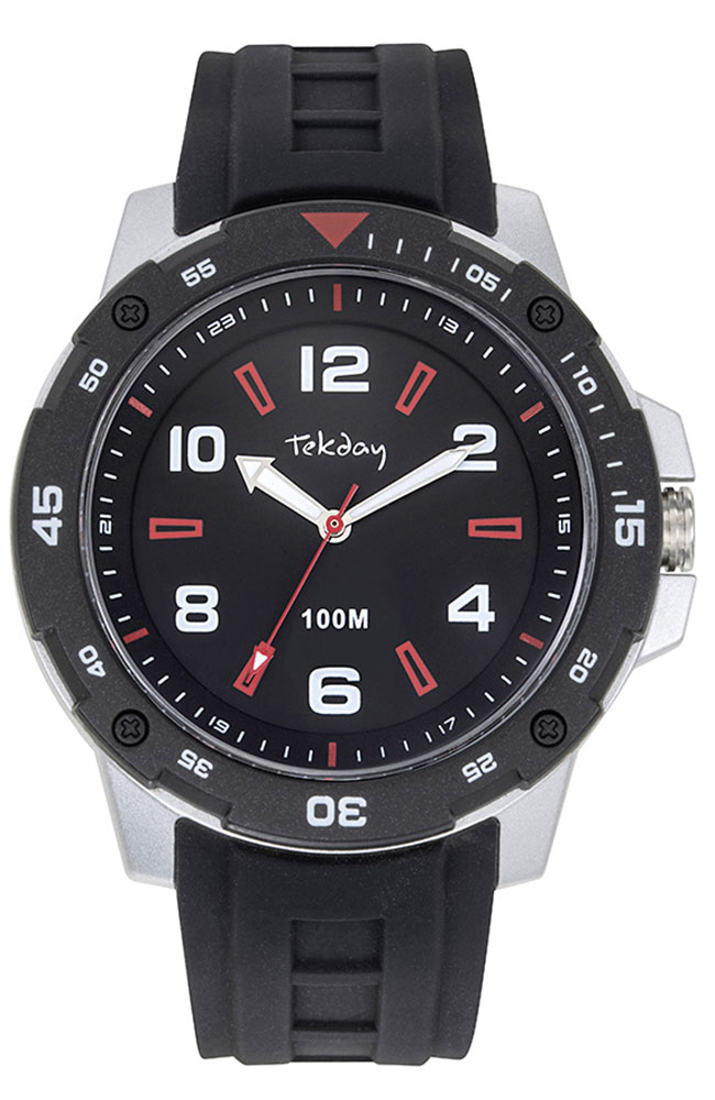 Ανδρικό ρολόι χειρός Tekday με μαύρο καντράν και μαύρο καουτσούκ λουράκι.
