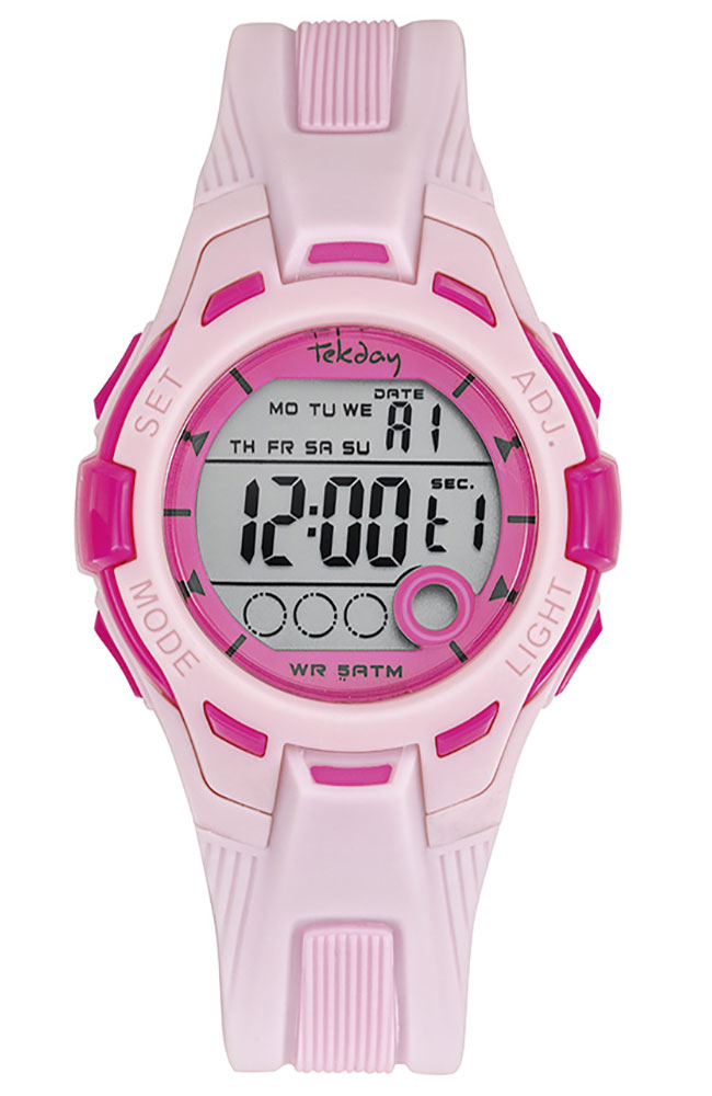 Παιδικό ρολόι χειρός Tekday με ψηφιακό καντράν και ροζ καουτσούκ λουράκι.