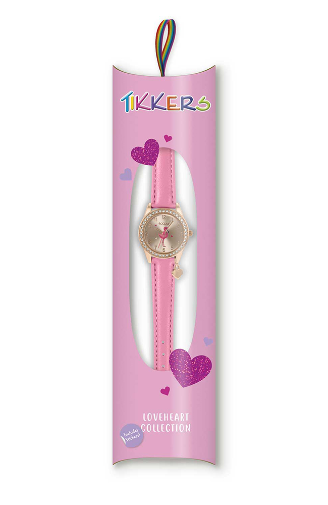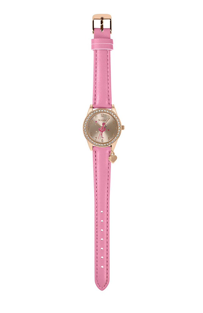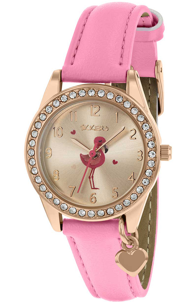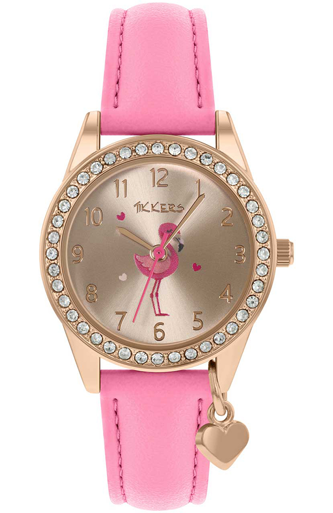 Το Tikkers flamingo sparkle είναι ένα από τα πιο μαγικά ρολόγια μας! Ένα υπέροχο φλαμίνγκο κοσμεί το καντράν από ροζ χρυσό, πλαισιωμένο με αστραφτερές πέτρες και φινίρισμα με ένα αστραφτερό γούρι καρδιάς. Συμπληρώνεται από ένα έντονο ροζ λουράκι από δερματίνη.