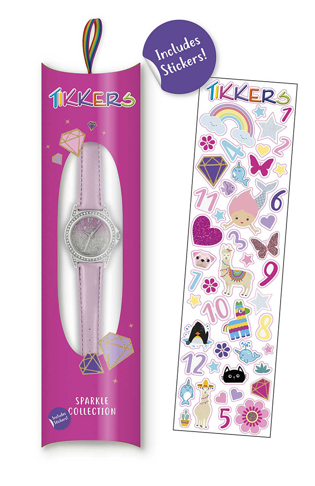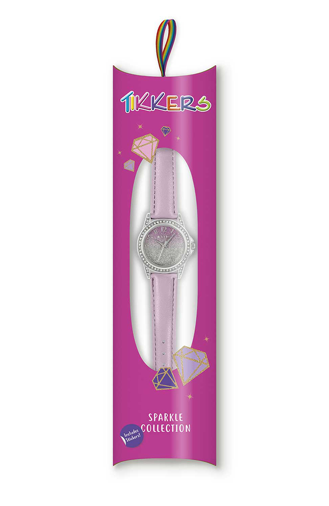 Σας παρουσιάζουμε το σούπερ αστραφτερό γκλίτερ ρολόι μας! Το ρολόι αυτό σε ασημί τόνους συμπληρώνεται από μια εντυπωσιακή πέτρινη στεφάνη. Το καντράν έχει ένα λιλά ombre glitter εφέ. Το ρολόι έχει φινίρισμα λιλά χρώματος από δερματίνη και αγκράφα σε ροζ χρυσό. Ειναι συσκευασμένο σε ένα αστραφτερό κουτί δώρου, το οποίο περιλαμβάνει και αποκλειστικά αυτοκόλλητα Tikkers! Όλα τα ρολόγια έχουν εγγύηση ενός έτους.TK0191