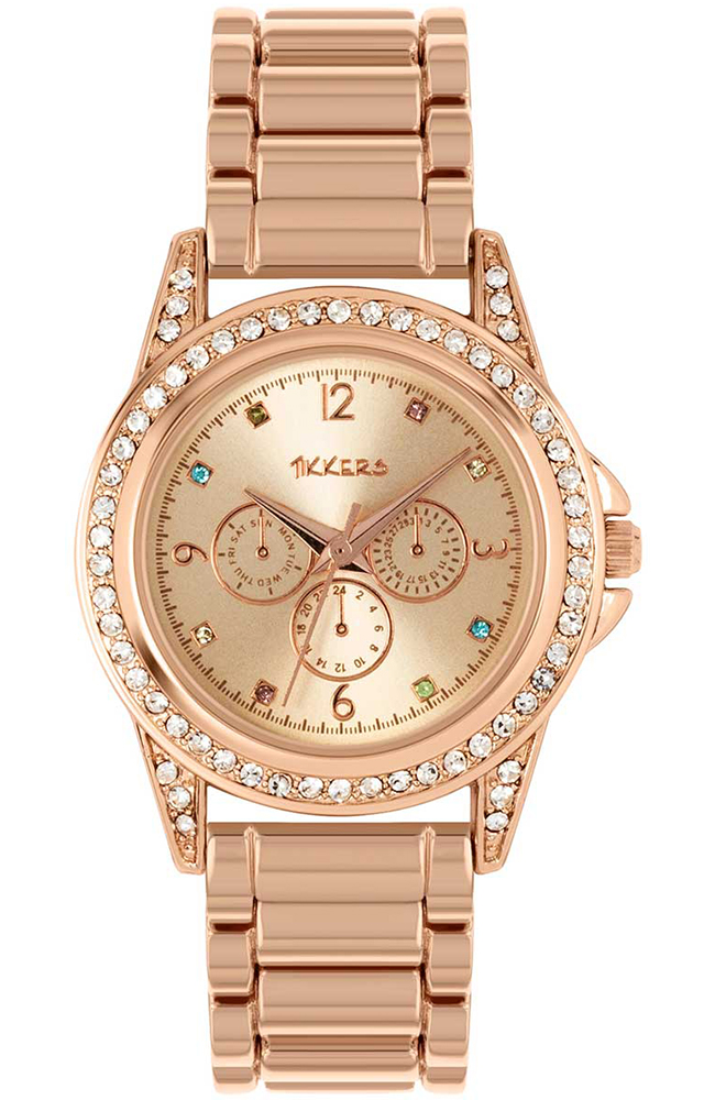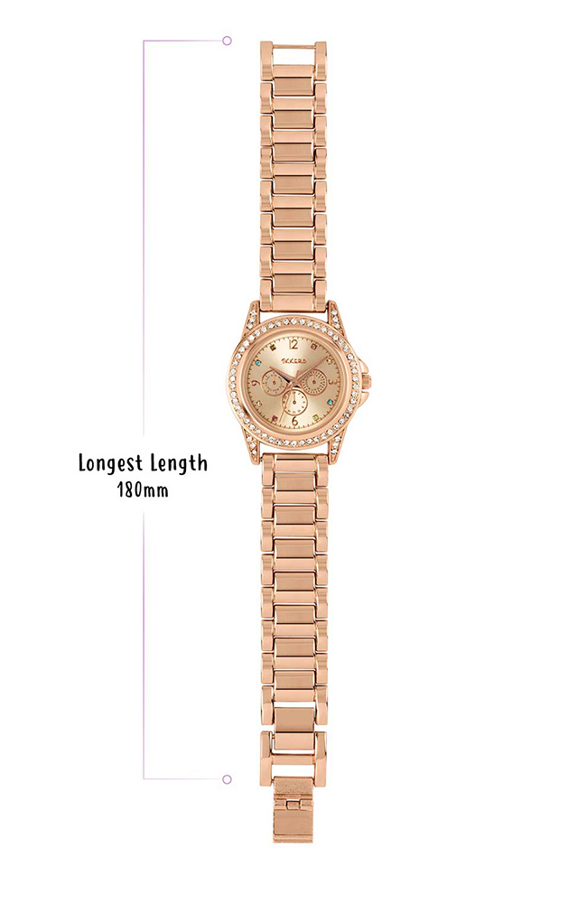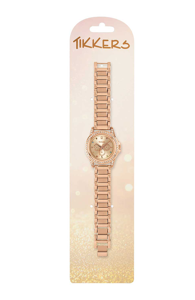 Ένα από τα αγαπημένα μας, το rainbow sparkle ρολόι τα έχει όλα! Η κάσα και το καντράν είναι ασορτί με αστραφτερές πέτρες, δίνοντας έτσι ένα μοδάτο στυλ! Είναι φινιρισμένο με ένα ουράνιο τόξο και διαθέτει πολύχρωμους δείκτες ώρας. Συμπληρώνεται από ένα βραχιόλι σε τόνους ροζ χρυσού με εύκολα αφαιρούμενους συνδέσμους για προσαρμογή μεγέθους. Εγγύηση ενός έτους.