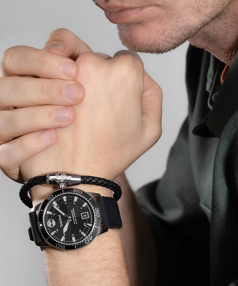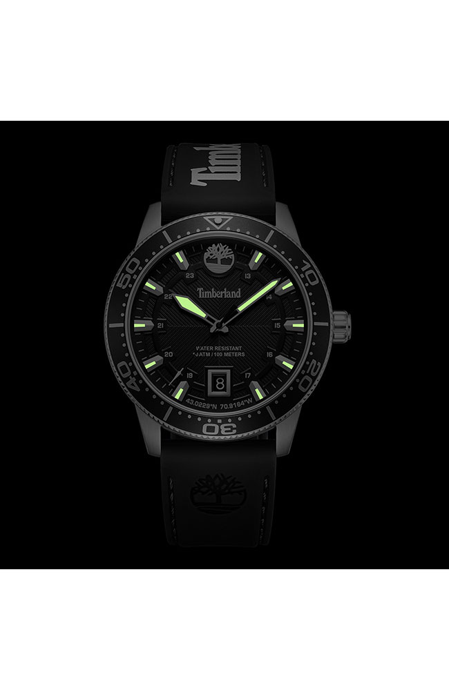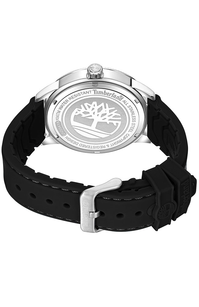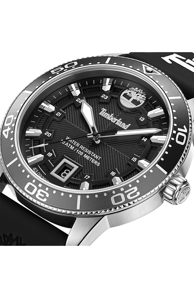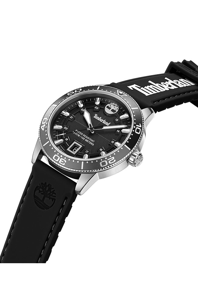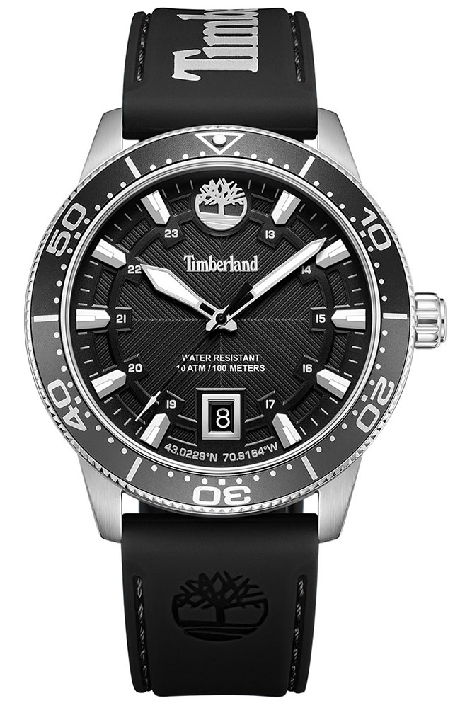 Ανδρικό ρολόι χειρός Timberland με μαύρο καντράν και μαύρο καουτσούκ λουράκι.
