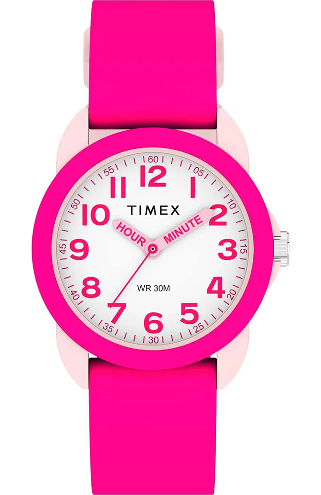 Παιδικό ρολόι Timex με λευκό καντράν και ροζ καουτσούκ λουράκι.