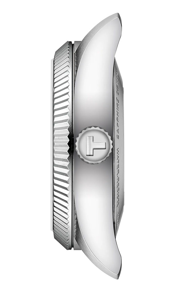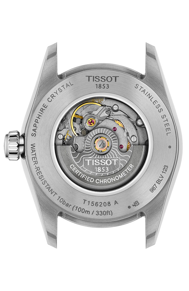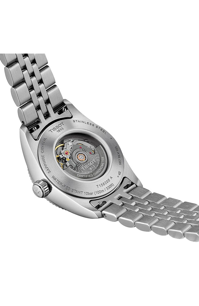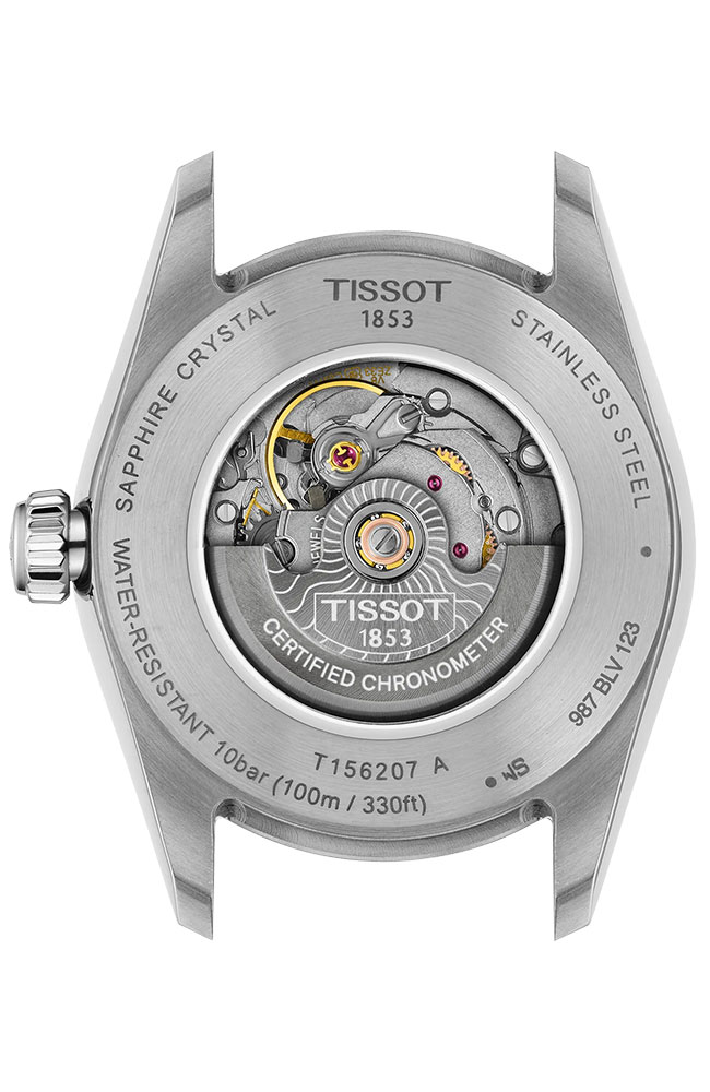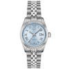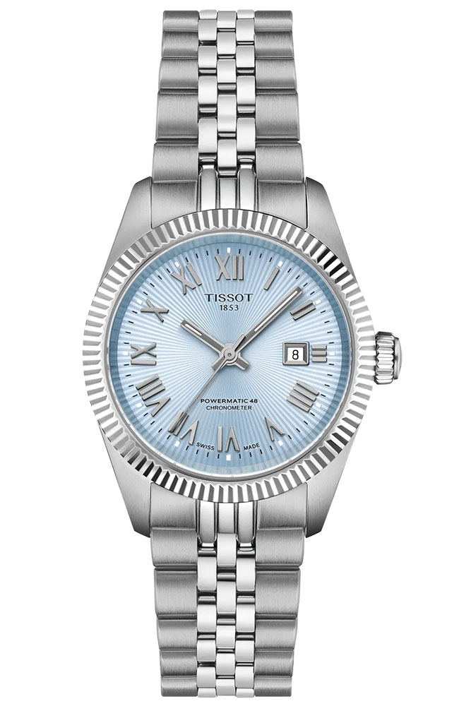 Γυναικείο ρολόι TISSOT με αυτόματο μηχανισμό από ανοξείδωτο ατσάλι, με γαλάζιο καντράν και μπρασελέ.