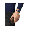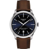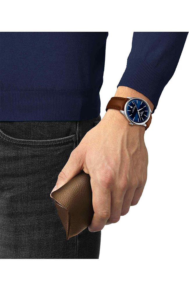 Ανδρικό Ρολόι Tissot Ελβετικό με αυτόματο μηχανισμό από ανοξείδωτο ατσάλι με μπλε καντράν και δερμάτινο λουράκι.