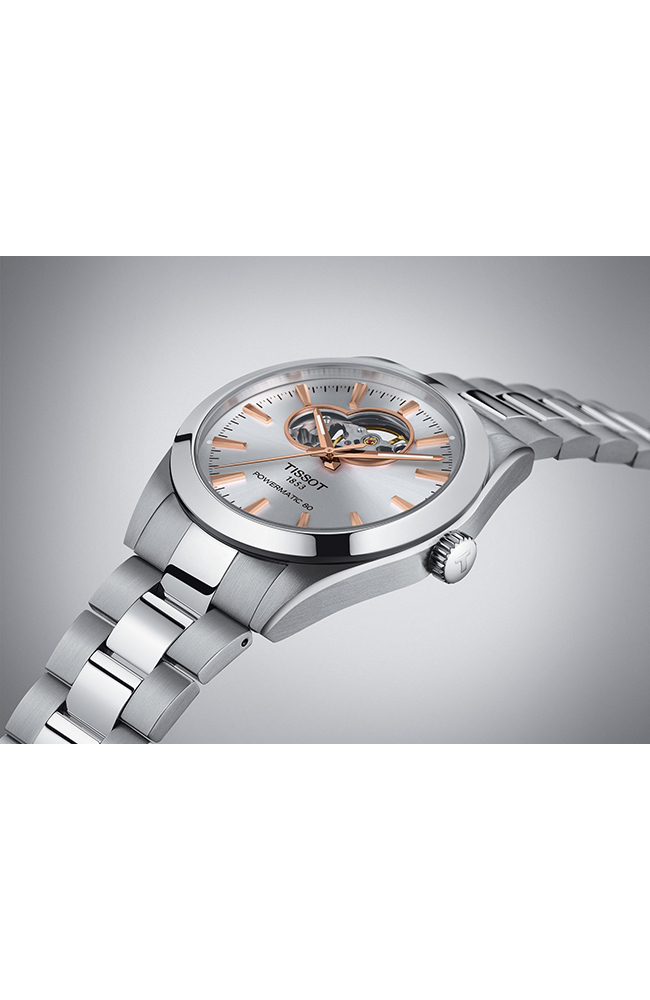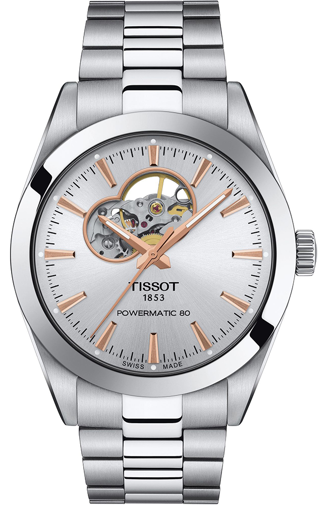 Ανδρικό Ρολόι Tissot Ελβετικό με αυτόματο μηχανισμό από ανοξείδωτο ατσάλι με ασημί καντράν και μπρασελέ.