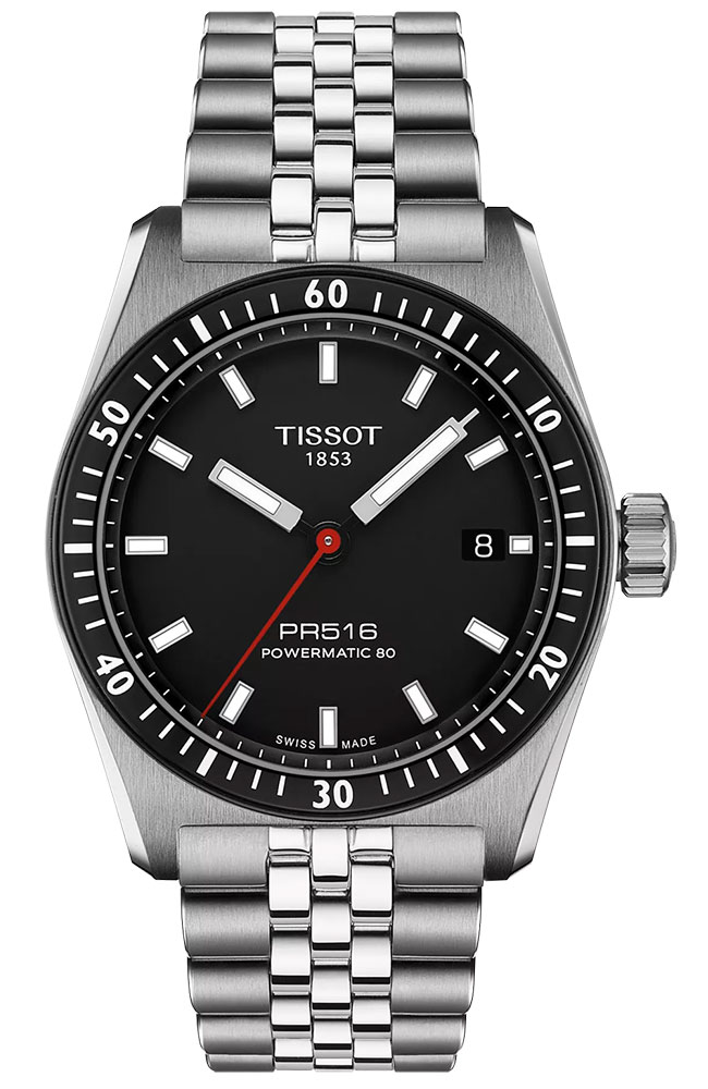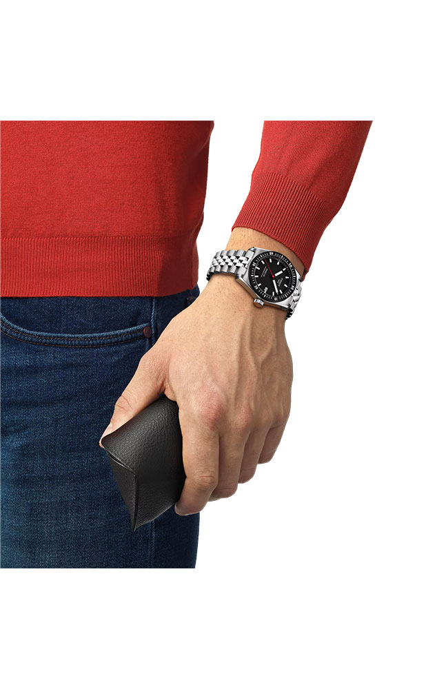 Ανδρικό Ρολόι Tissot Ελβετικό με αυτόματο μηχανισμό από ανοξείδωτο ατσάλι με μαύρο καντράν και μπρασελέ.