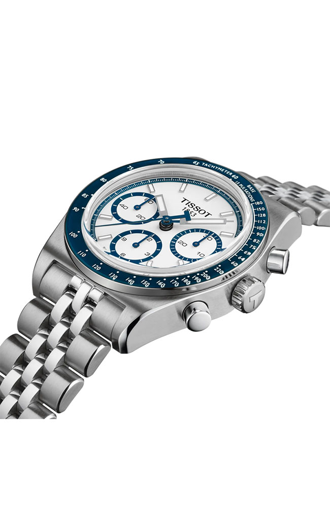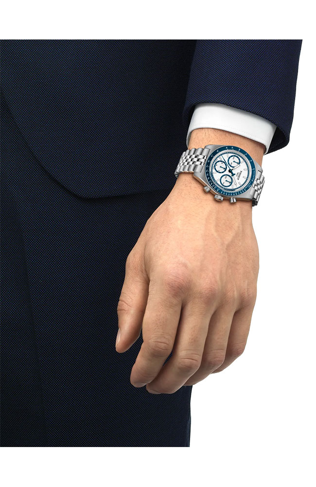 Παρουσιάστηκε για πρώτη φορά τη δεκαετία του 1960, το PR516 εμπνεύστηκε από τον κόσμο των αγώνων αυτοκινήτων υψηλής ταχύτητας. Καθώς η Tissot επεκτείνει τη σειρά PR516, συνεχίζει να τροφοδοτεί το πνεύμα όσων αναζητούν ένα ρολόι τόσο αδυσώπητο όσο οι επιδιώξεις τους – οδηγώντας τους να αντιμετωπίσουν τις προκλήσεις κατά μέτωπο, όπως και οι ήρωες που το φορούν. Ο χρονογράφος, το ταχύμετρο και το παλμόμετρο Valjoux λειτουργούν από κοινού και είναι κατασκευασμένα για να καταγράφουν κάθε ρυθμό όταν η ζωή είναι συναρπαστική. Με την ταχύτητα και τον καρδιακό ρυθμό να παρακολουθούνται στη στεφάνη και τον χρόνο να εμφανίζεται καθαρά στο λευκό καντράν με μπλε πινελιές, αυτός ο σχεδιασμός προσφέρει μια απρόσκοπτη και διαισθητική εμπειρία, παραπέμποντας στον απεριόριστο ουρανό και τις απεριόριστες δυνατότητες μπροστά. Οι μετρητές, τοποθετημένοι στο κάτω μέρος του καντράν, ενισχύουν τη δυναμική εμφάνιση του ρολογιού.