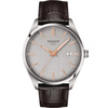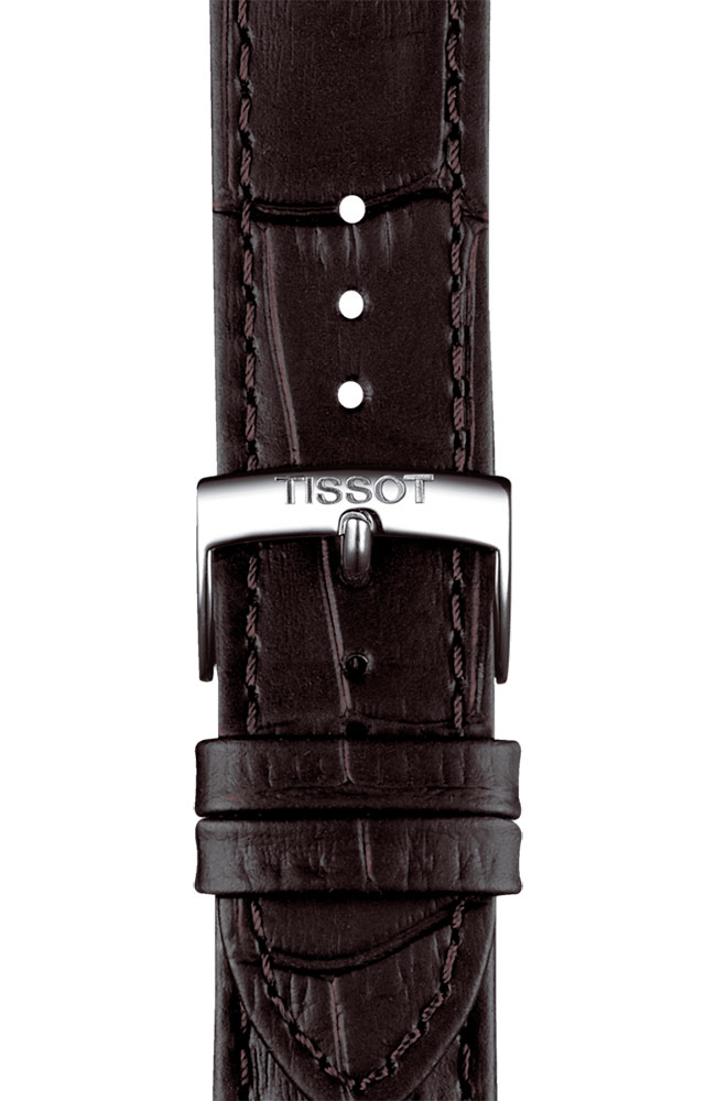 Ανδρικό Ρολόι Tissot Ελβετικής κατασκευής από ανοξείδωτο ατσάλι με ασημί καντράν και δερμάτινο λουράκι.