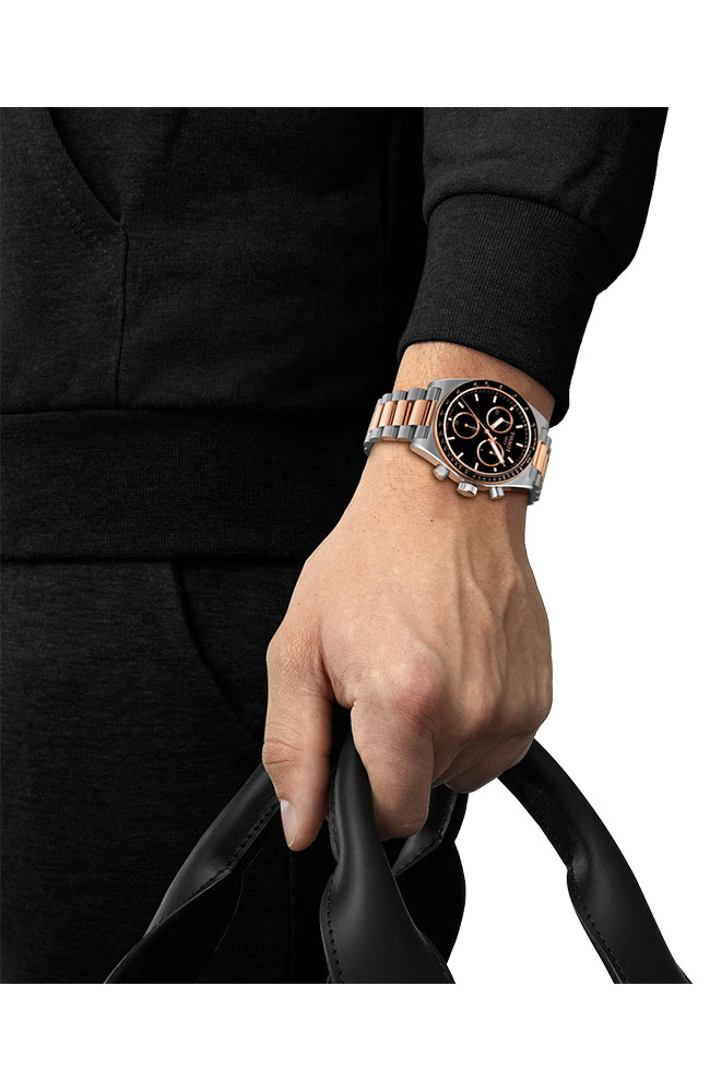 Ανδρικό ρολόι Tissot ελβετικής κατασκευής από ανοξείδωτο ατσάλι, μαύρο καντράν και μπρασελέ.