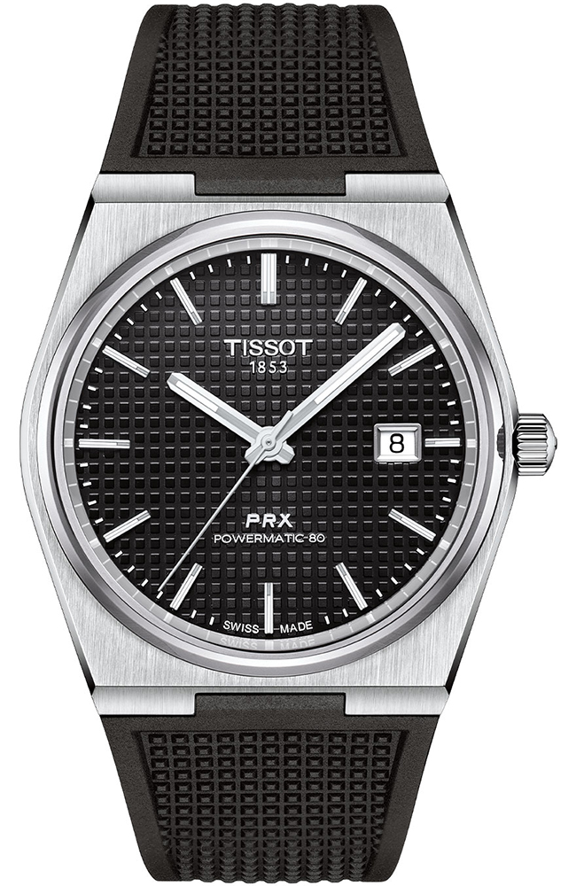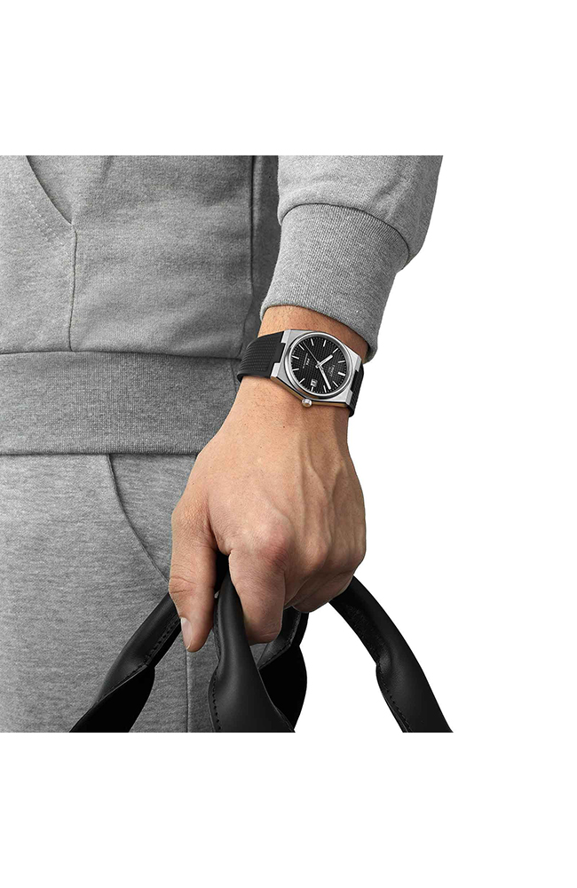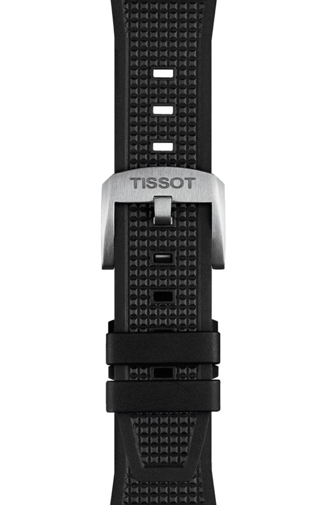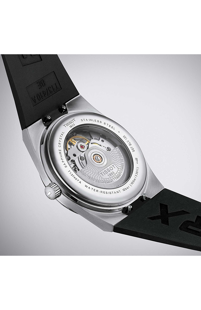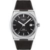 Ανδρικό Ρολόι Tissot Ελβετικό με αυτόματο μηχανισμό από ανοξείδωτο ατσάλι με μαύρο καντράν και καουτσούκ λουράκι.